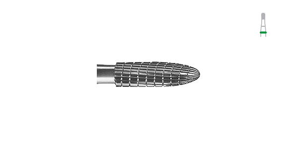FSQ is a fine, high-efficiency toothing with cross-cut. Developed for working on transitions to soft relines, for hard or elastic acrylics. The cross-cut of this highly efficient toothing divides the instrument blades into smaller cutting segments.